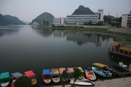 over the hill behind the confucian temple is a large reservoir and a park, with a few karst mountains poking out of the water. down below, along the stairway that lead into the water, men were flying their kites, which i saw from far away. i sat down and chatted with them. i asked one of them how far his kite flew. he pointed to the sky. i couldn't find it at first, but then i saw 3 small dots. "800 meter," he said. i then told them my story, and one of the men became very animated; apparently he hates foreigners, and wanted to make sure how "god damn white devils" are ruining the world. his friends were laughing at his antics, while i was getting ready to defend myself in case it got violent. all of the men told me i should visit huangguoshu waterfall before i leave anshun (2nd largest waterfall in the world, according to them, and the largest in asia, according to my own research), which according to my schedule is tomorrow morning.