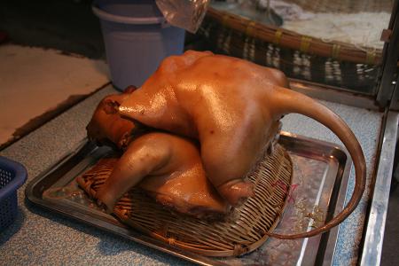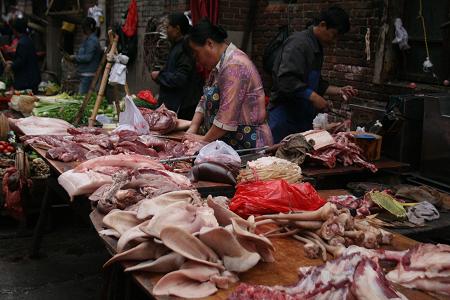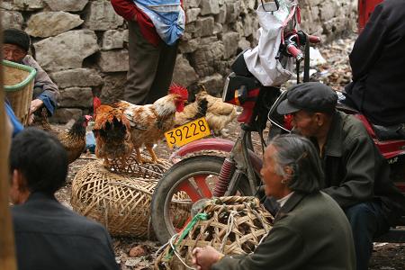 there was a large chicken market and i saw so many birds slaughtered that i became desensitized to avian destruction.