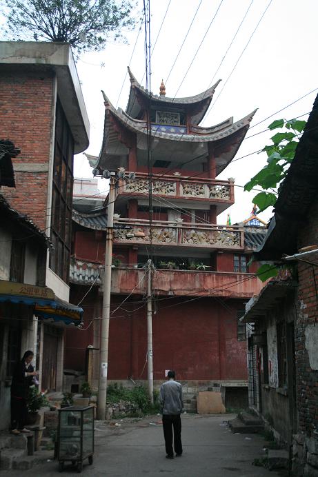 after they reeled in their kites, the men packed up and left. i walked back into town, taking a detour and visiting the donglin temple briefly, before i found myself a little lost and kept on wandering until i came out onto that night market street (gufu street). trying to find a 3rd internet cafe, i walked around in the dark. i stopped at a lamb restaurant and had some noodles (RMB$4). unable to find an internet cafe, i went back out to the main rotary and finally saw one, the one i'm at now. unfortunately security is the same and i can't upload photos once again. wait until guiyang!
