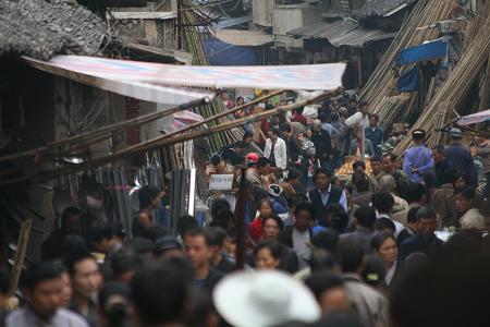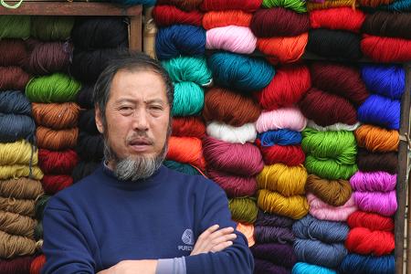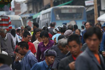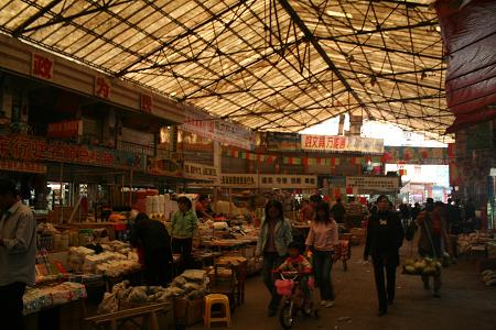 after finishing my chicken sandwich, i walked west until i reached shixi road, which according to LP was where most of the market action was. when i got there i didn't see anything, but as i continued walking north along the road, i noticed more people, until i got to the epicenter, a crazy frenzy of pedestrians, buses, motorcycles, and taxis - this was the market! there was a group of tourists from holland (the same group that the couple i met earlier belonged to), who were attracting a lot of attention.