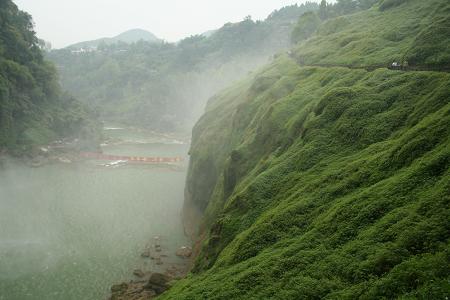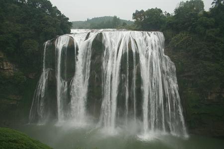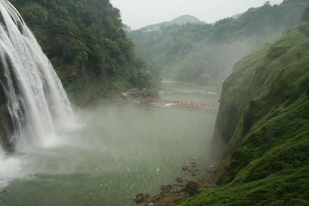 when we arrived i was surprised at the entrance fee - RMB$80 - about half of what i thought it'd be. feeling like i got a bargain, i went in. before you actually see the waterfall, first you walk through a really nice and fragrant bonsai garden. normally on any other day this would be the main attraction for me, but i focused on waterfalls so i quickly went through the garden. a nicely maintained stone pathway led you to the waterfall, as slowly you see more and more of it between the trees, as the noise of the waterfall got louder, and the area became misty from the spray. i was there early (around 10am) so i just happened to beat the horde of chinese tourists, which i could see off in the distance behind me.