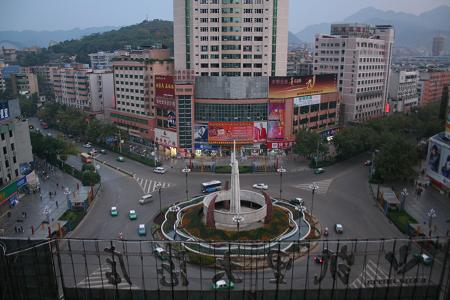 with banks here closing at 6pm, i got there with just enough time to get complete the transaction. wandering around the city center, i was amazed by how urban and new it was, clean and active - compared to the area around the bus station. i asked a few hotels for prices - all amazingly affordable. i regretted taking my shithole guesthouse, it'd have been better to live closer to the city center. before heading back in the direction of the bus station, i came across the kaili hotel (chinese name: kaili gioudian). isn't this the place chris and summer were staying? i decided to check it out. stepping inside i could sense the opulence. how much for a single room? RMB$120. curious, i asked to see the rooms. i went up to the 10th floor. my jaw dropped. an amazing view of the downtown area, plus the most amazingly designed bathroom i've ever seen, all glass walls and see-through. they brought me to the 16th floor. the same, just bigger. having seen enough, i went back downstairs. "i take a room," i told the receptionist, figuring out in my head what i'd say to the manager of the bus station guesthouse.