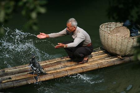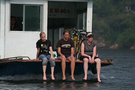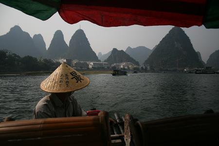 i wanted to maybe climb one of several nearby karst mountains, but ended up taking a bamboo raft ride for a hour (RMB$50). my captain told me what he was doing was actually illegal and if he got caught, they'd confiscate his raft. coming back, he spotted some police on a speed boat and quickly pulled ashore on the opposite side of the li river, paying for my ferry ride back to town.