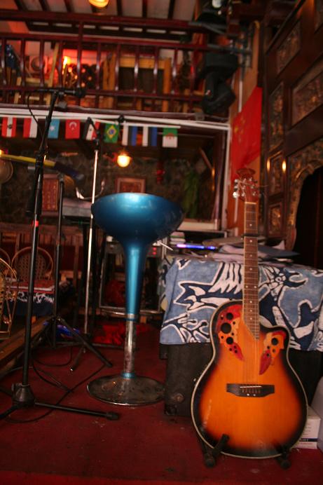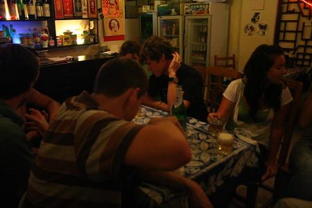walking back to the hostel i bought a pair of green canvas shoes (RMB$12) i see a lot of farmers wearing ("farmer shoes"). since it'd been a while since i ate, i had a late lunch around 4pm at the mei you cafe, another lackluster pizza (RMB$18, cheaper than twin peaks cafe). i stayed for a bit, writing in my journal, watching the tourists walk by from the window of the first floor restuarant, before returning to this internet cafe, hopefully to post some photos.