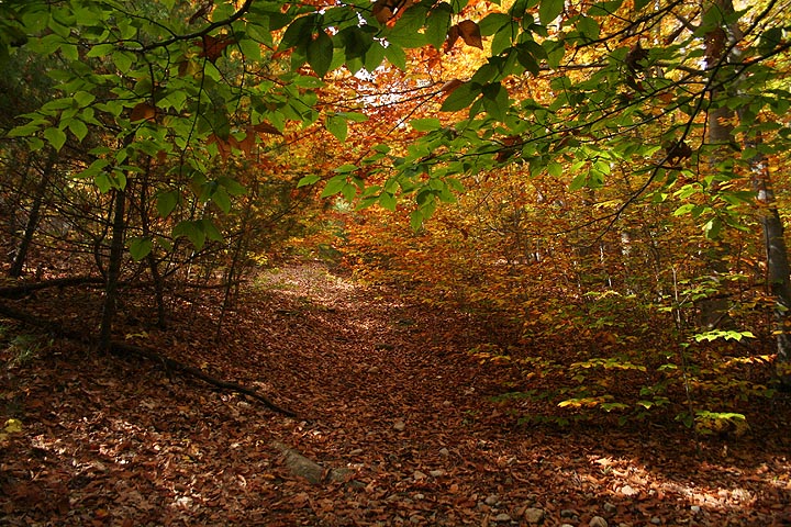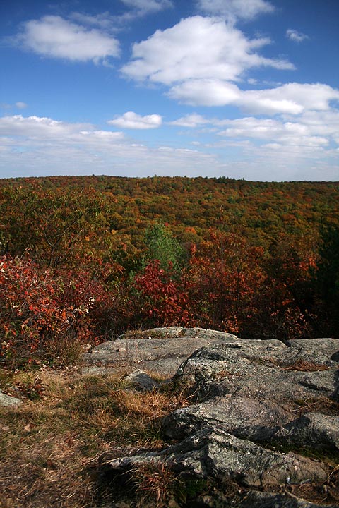 i decided to take a detour and tried to find a hidden pond in the woods. i got as far as some private property without seeing this elusive body of water and decided to return to the main trail. when i finally made it up to the peak, i saw that the foliage wasn't at peak colors yet. i finished off some chocolate covered cookies (my breakfast and lunch) and walked back down.