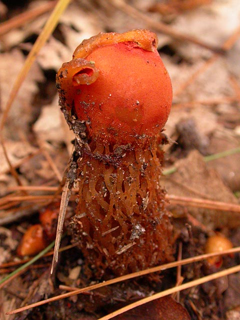 some stalked puffballs in aspic. they sort of looked like stinkhorns except they're orange with jelly-like seeds.