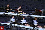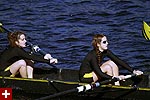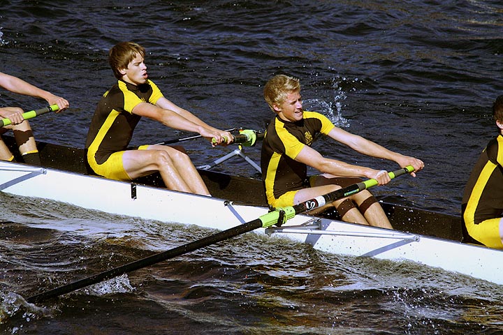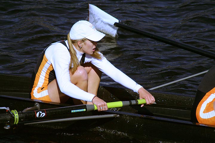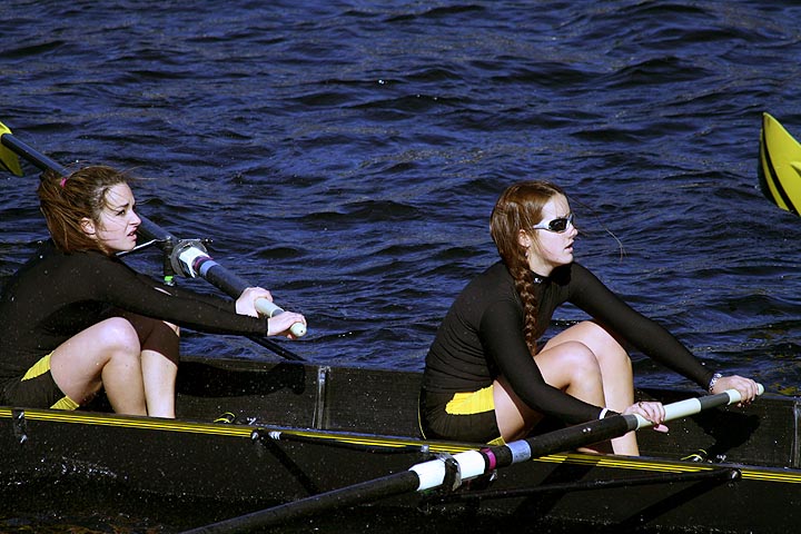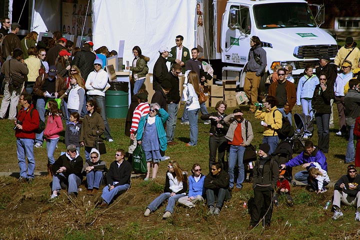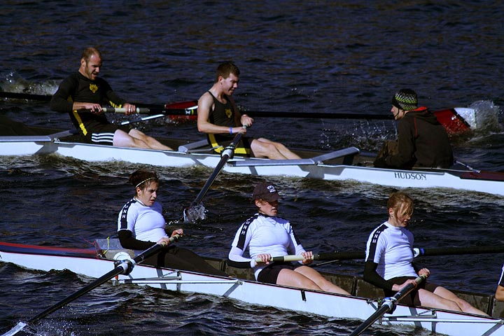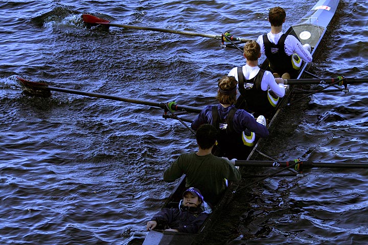 the annual head of the charles regatta is only interesting for me because 1) i live within walking distance of the charles river, 2) it gives me a chance to practice my telephoto shooting, and 3) the torrent of young female athletes straining and moaning as they work their oars in unison. used to waking up early these days, i got out of bed and made my way down to harvard square. the weather was perfect, a sky of deep blue, with a crisp autumn air. i walked the river looking for photo ops, buying an italian sausage ($6) for lunch. it wasn't until i got home did i realize i had the camera set to the wrong white balance (flourescent light, giving all my photos a bluish hue, which i've managed to correct with photoshop). in the evening my parents came over for dinner and i showed them more travel photos, served off the external hard drive, routed through my ibook, and displayed on the television.