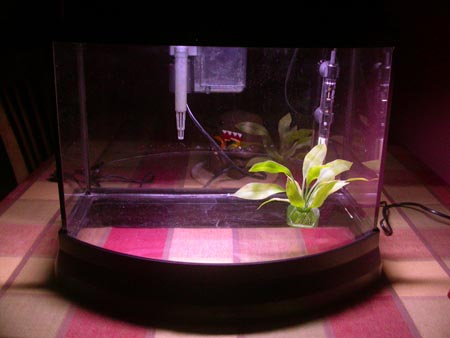 once i got back home, i cleaned out the dirty aquarium, which had previously been sitting in storage in a basement. i polished the glass tank until it was spotless. throughout the night i would come back and admire the empty aquarium, turning on the flourescent light, trying to imagine what i can put in it. if i have time tomorrow, i want to visit a pet store and see if i can get some more plants and an air pump (right now it just has an external filter and a heater).