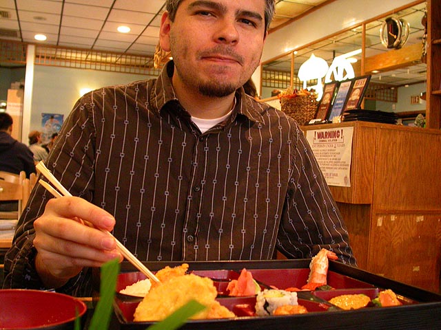 i met james at suishiya, the place where i used to go to get great box lunch specials but now i know it as a good sushi spot. the last time i saw james he was still unwed and i asked him how his life is different now that he's been married for well over 3 weeks. he inquired what i was up to these days ("nothing" was my response)