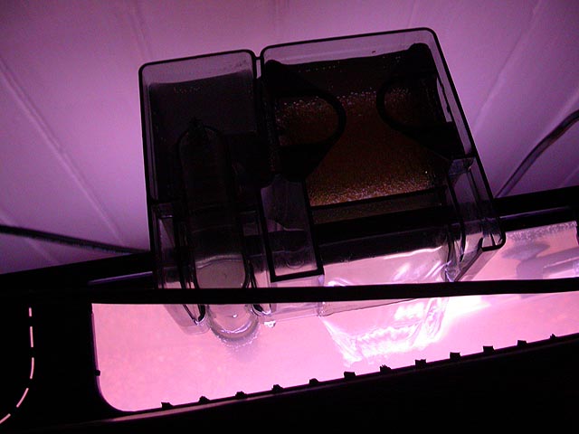 the foggy condition makes for great running weather, but i rationalized myself out of exercising for the day, deciding instead to set up the aquarium. first order of business was to wash the bag of fish tank gravel. i felt like i was panhandling for gold as i rinsed out the tiny stones in the tub. into the aquarium went the pebbles, followed by 7 gallons of water. i plugged in the filter and waited for the pump to draw enough water to start cycling. the water was cloudy from the remaining dust particle in the gravel, but it was sort of mesmerising watching the filter swirling the water around. at this rate, with already so much water movement, there's no need to buy an aerator to put more oxygen into the tank. throughout the night the tank would gradually get clearer and clearer.