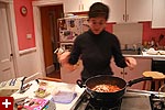 the heat from the kitchen had raised the temperature just enough so my thermostat (set at 60 degrees) didn't turn on. it was warm in the kitchen but cold everywhere else. before julie arrived for dinner, i turned up the heat. with her turn to cook,