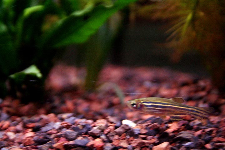 be schooling fish, the danios seemed much more independently-minded. they were also more active, exploring the tank right away, eating the fish flakes i sprinkled on the surface, occasionally chasing one another,