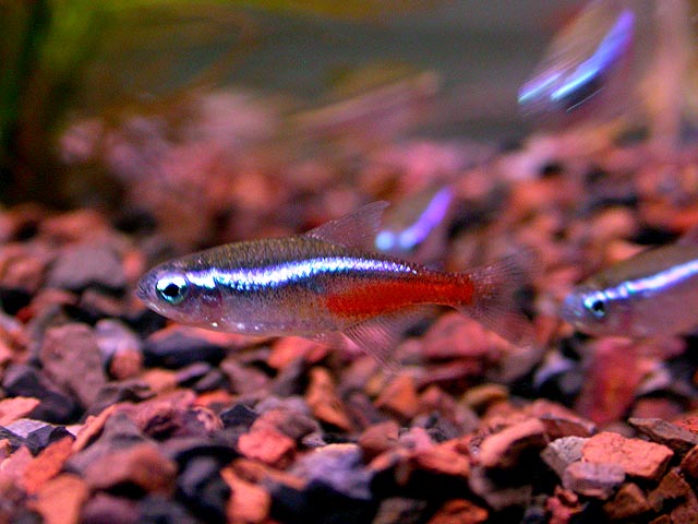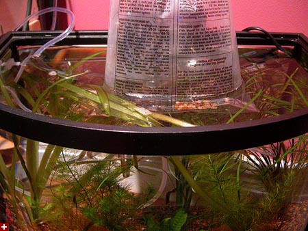 and swimming against the filter's inflow current. the tetras had the opposite personality. right away each one would hide underneath the plants, and they seemed to be scared, gasping for air. minutes later they calmed down and formed into a single school and spent the entire time at the bottom of the tank, swimming from one corner to another, always in a group.