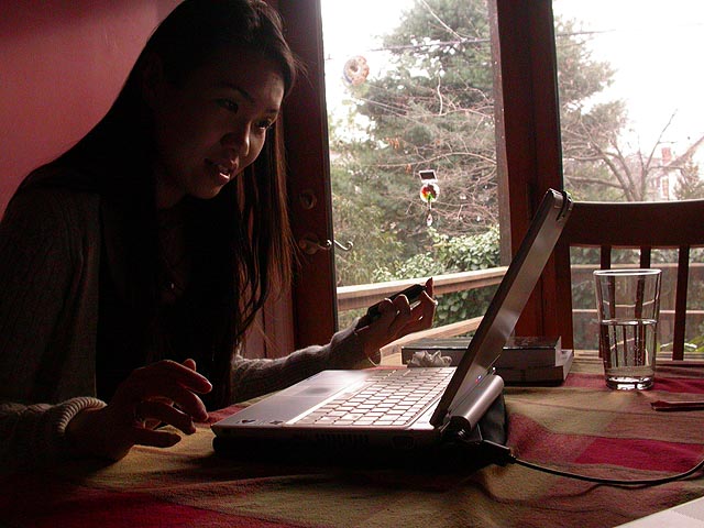 and every single sentence had to be further translated for me into layman chinese before i could translate it into english. so we found out pretty quickly that what she wanted to do wasn't going to work. speaking of work, throughout the day i was on standby with client S and would occasionally bash away on my desktop PC to finally upload another version of the code for testing. alisa stayed the whole day, and would've probably stayed longer if i didn't have something else to do in the evening. before she left, i helped explain in chinese an english essay she had to read for tonight about "embodied narrative" and how it applies to music. it was a tough read, and even i barely understood it.