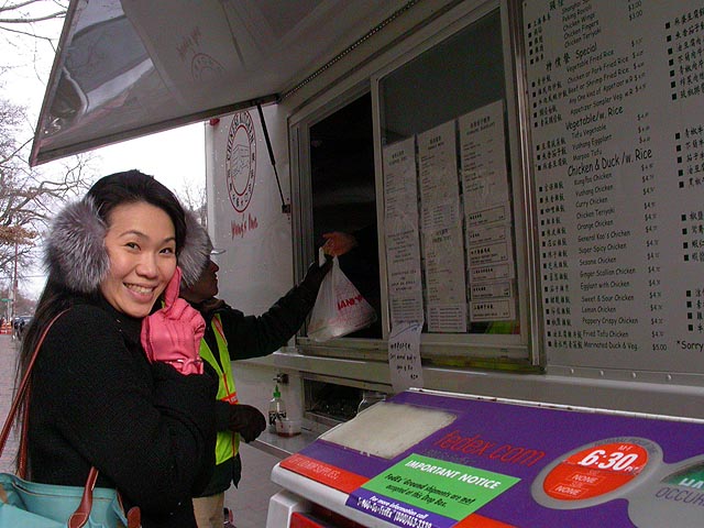 i went down to harvard square this morning to pick up alisa, who needed some help translating from chinese to english for one of her papers. walking back to my place, we passed by a chinese food truck and alisa decided to get some lunch, some shrimp medley with rice. inside my house a cold bagel was waiting for me (alisa called me right when i was about to eat).