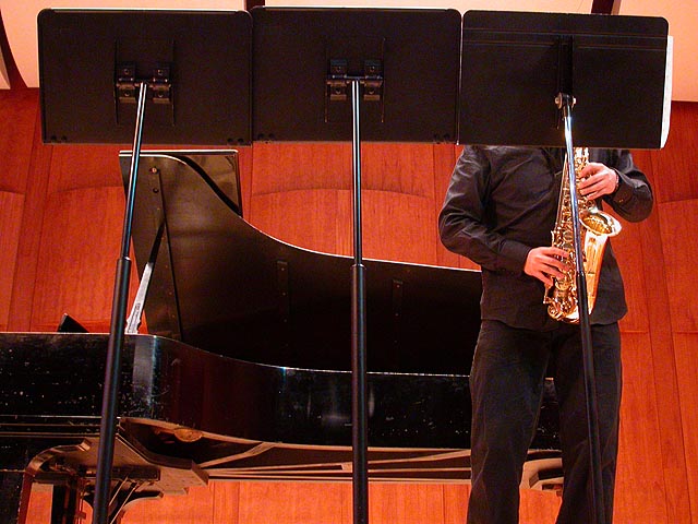 all the pieces except the last one where either saxophones or saxophone accompanied by piano. i noticed many had engravings on their saxophones,
