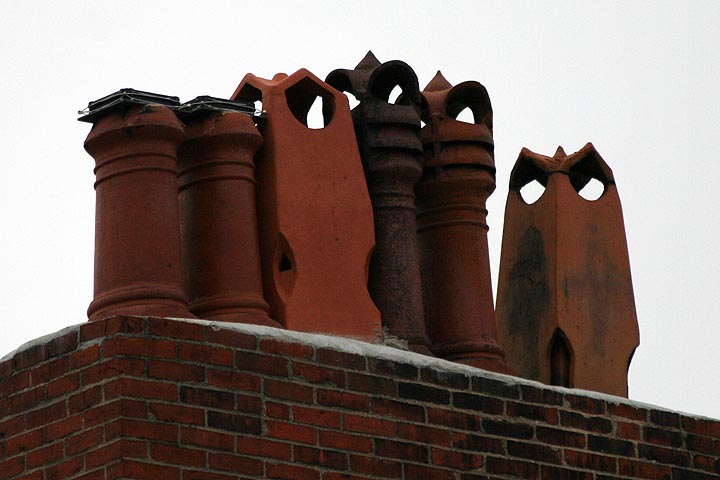 gaudi-esque chimney tops: some of the large mansion on ash street have really unique chimney tops. they remind me of gaudi architecture for some reason.