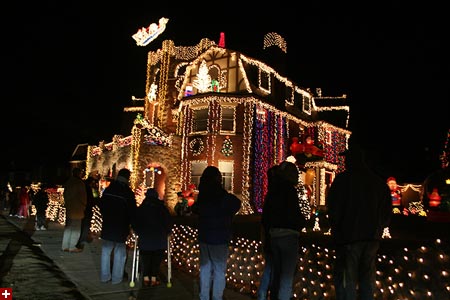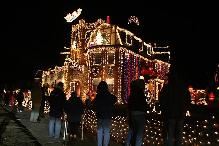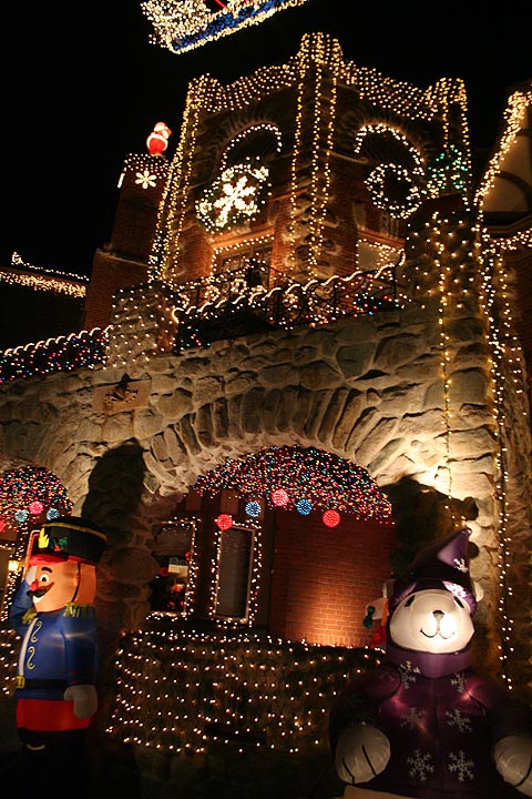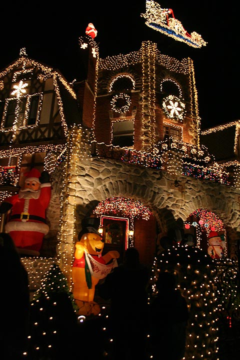 before we could do that though, they made a quick stop to show me the "crazy house" on jamaica way. it wasn't on the agenda, but because i live next to somerville - which i think has the best christmas light displays in all of greater boston - i didn't believe a house could be "crazier" than the ones in my neck of the woods. we didn't even get to the house yet before i could already see the lights from down the road, my jaw dropping immediately and my face contorting into a WTF expression. although i think somerville has the most variety and color, this one house on jamaica way definitely stands out in terms of quantity: imagine a huge mansion just covered in christmas lights. it was such a attraction, people were pulling over on the side of the road to gawk and get their photos taken.