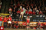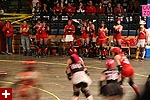 after picking up our tickets at roll call, we went inside and sat with carl's friends who had saved us some seats. i was expecting a lot more young hipsters in the audience, so i was very surprised to fix it quite mixed, with a lot of families bringing their kids. some people wore jerseys of their favorite players (a souvenir table was set up when you first come in, along with a raffle) while other made signs. even outside in the parking lot we saw some folks tailgating, have a pre-game cookout from the back of their truck. as for the venue, i know nothing about the shriners except it's a club where men wear fezzes.