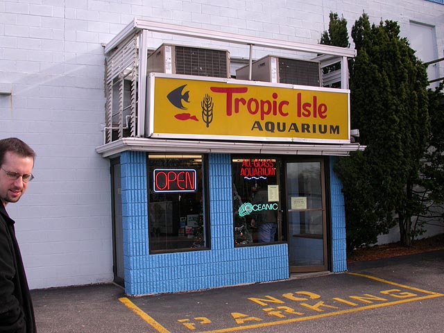 at 10am i drove out to malden to pick up dan and we made our way to framingham (via watertown, newton, wellesley, and natick) to tropic isle aquarium, reportedly the best fish pet store in eastern massachusetts. i got lost a little bit, went down 135 instead of route 9, but luckily i had my maps in the car so we were able to correct for the mistake.