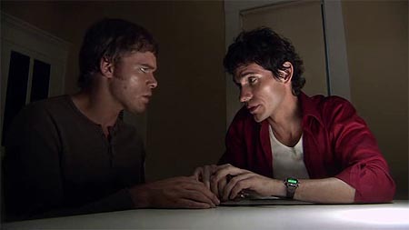 i went back to belmont around noontime to fix the new belkin router which suddenly went dead this morning. it was one of those things that as soon as i got there, the problem mysteriously fixed itself. when i returned home i made good on my weekly resolution and went out for a run around 3pm. i cramped up like crazy but there was hardly anybody out to see my humiliation so it wasn't so bad. when i got back i just finished downloading last night's dexter finale and watched it after my shower. so good! i hope michael c. hall wins the golden globe for best actor in a television drama.