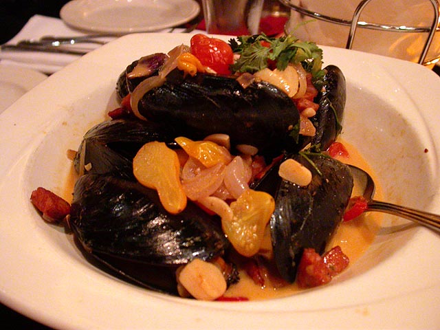 nevertheless, not wanting to feel left out, i ordered some wild cape cod mussels. by the time my food arrived, so did eliza and shauna. the mussels were okay but somewhat tasteless i thought. our conversations ranged from poisonous chemicals in perfumes, food allergies, successful blind dating, fluff photo, and the trial and tribulation of higher education.