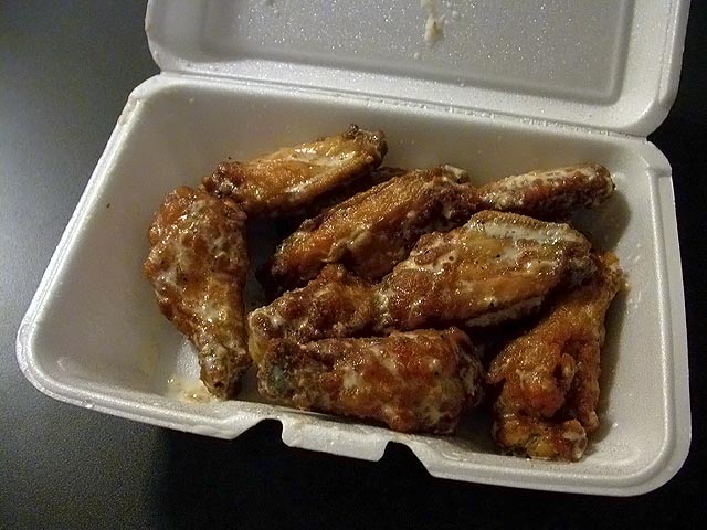 came evening manny came to pick me up and together we went to wing's works in davis square to order some wings: i got the 10 piece gourmet, he got the 14 piece combo of half gourmet and half medium. it was while waiting for our order that manny told me the big news: he's moving to pennsylvania! when? actually, last week! seems like daisy got a new job down there and her company wanted her company would pay her to relocate, so they went down to do some house hunting and came back with a place! manny, who's job is still in cambridge, would be working on a traveling project for the time being, so it didn't matter too much where he was located.
