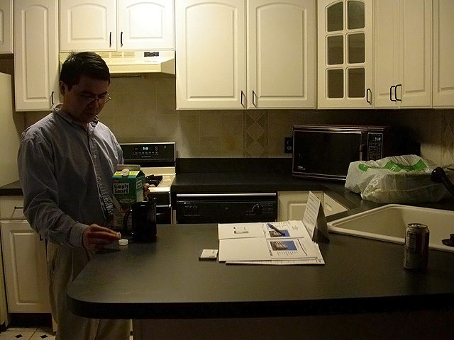 it was well past 11pm so i was surprised to find an tao still up and about, his blanket on the sofa, the television on, packing up some leftovers in the kitchen. i think it's good that he's "exploring the space" a little bit more, because thus far he's been overly polite when it comes to not invading my personal area. the guy lived here for 3 months when i was away, so this should practically be his second home already!