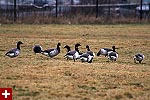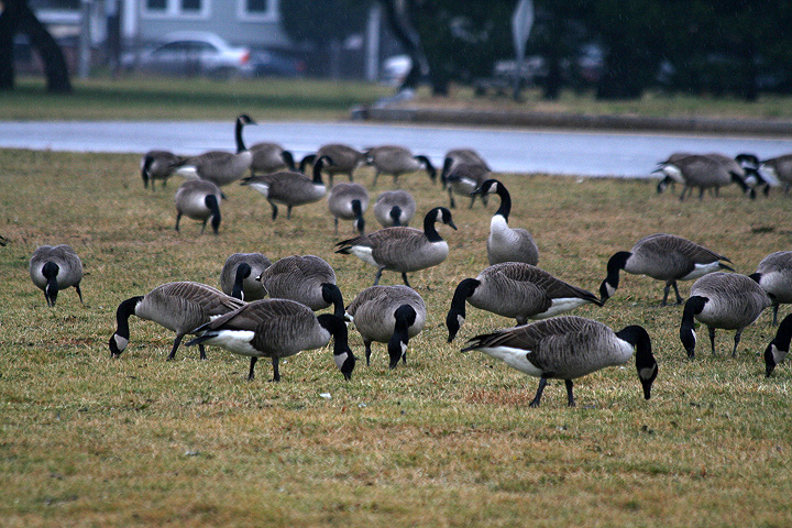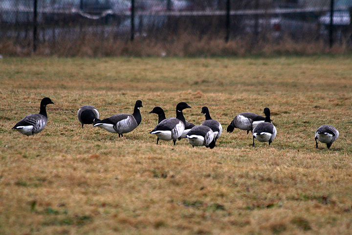 nahant is essentially an island connected to the mainland via a strip of land (these geographic formations are called tombolo). driving into nahant, i spied a flock of birds i've never seen before at the head of nahant beach. since there was no way we could make a u-turn, we had to drive all the way down the strip of land before we could turn back around. feasting on the grass was a flock of canada geese; behind them, a flock of brants, which from a passing glance resemble smaller sized canada geese. for some reason i knew what they were called even though i don't remember ever seeing one in the wild before. later jesse was able to verify the identification from her copy of the peterson's field guide stashed in her car.