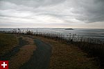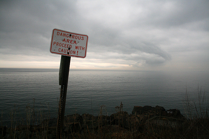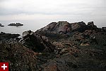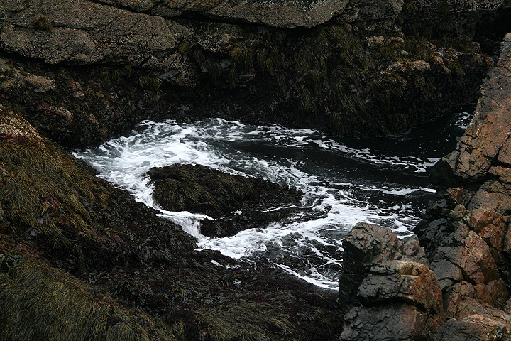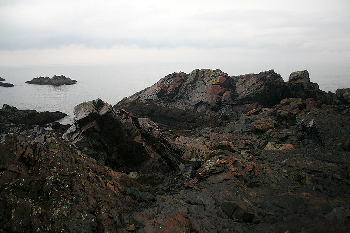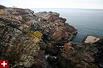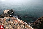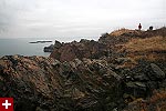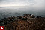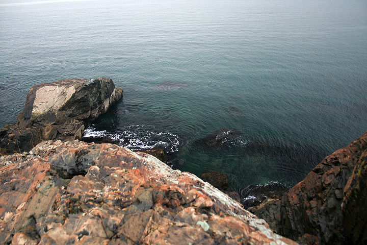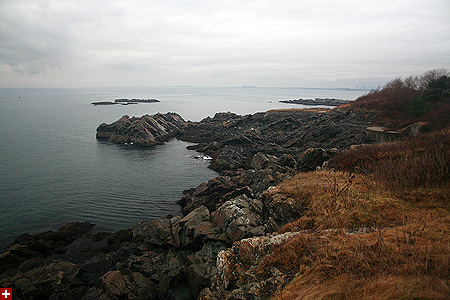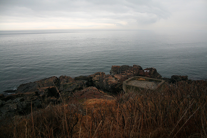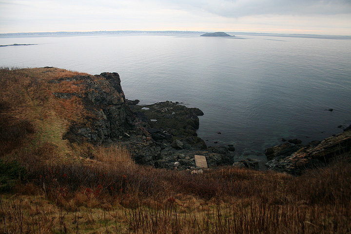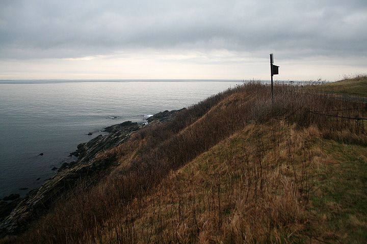 from our vantage point we could see distant light houses flashing their beacons. nearby was egg rock, an offshore island seemingly teeming with bird life as seen trough the binoculars. down below occasionally we'd see a sea bird or two, far enough away to sometimes be hard to identify. the weather looked violent, and at certain points on the horizon you couldn't tell where the ocean ended and the sky began. from the numerous abandoned gun turret tracks and cannon shelters we surmised that at one point this place was used as some sort of military bunker.