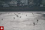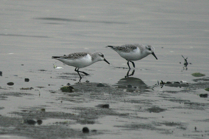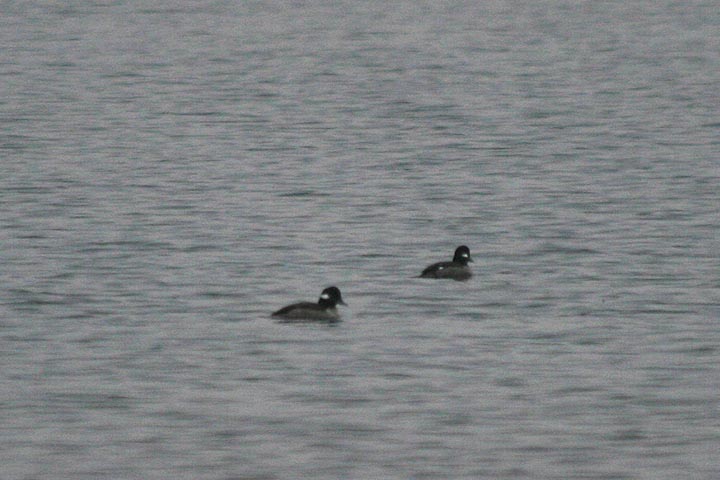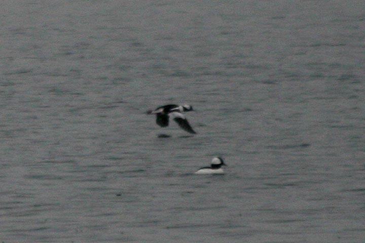 from the grassy field we walked to lynn harbor, on one side of that long stretch of road leading into nahant proper. here the water was calm and the shoreline was littered with rocks and shells. there were the ubiquitous seagulls but as well as some unfamiliar sea birds out in the water. for the most part they were too far away to see clearly (and definitely too far to get any good photos). it was also raining, so i was fumbling with not only my camera lenses but my umbrella as well. there were eiders, and a lot of small black and white ducks which we later identified as buffleheads. i'd seen wild buffleheads only one other time before, when i went to the great esker park in weymouth last winter. buffleheads also dive down underwater to feed, and pop back up to the surface, but not with the same hilarity as harlequin ducks. jesse also spotted some sanderlings black-bellied plovers (they lose their characteristic black bellies during the winter) walking about nearby.