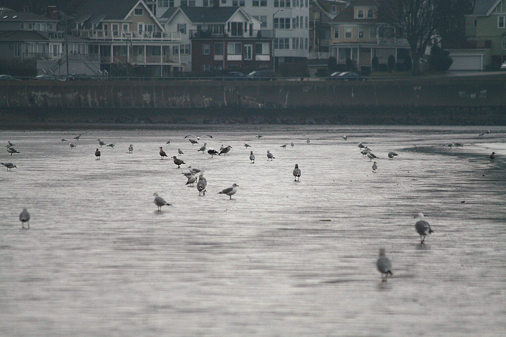 the last (and first) time i went naturing with jesse was about a year ago, when we went to the [chuck] norris reservation in norwell and then later visited nearby scituate. that was my first time seeing eiders (since then they're common enough a winter shore bird that i hardly notice them now). today jesse and i joined forces once again to look for winter birds in nahant. i've been to nahant one other time, with joel back during the summer of 2005. as i recalled, the weather was sort of overcast, which was the case today as well. although nahant is very far from somerville-cambridge, it involves driving through some heavily industrialized areas of everett, charlestown, revere, and lynn, and it's not a particularly scenic or fun drive, until you actually get close to nahant.