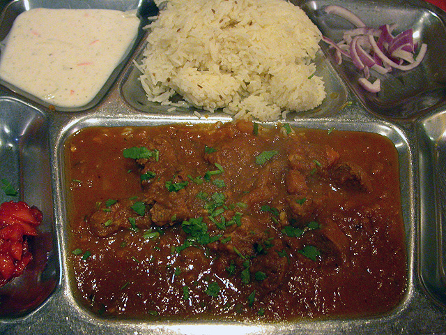 afterwards julie and i went to punjabi dhaba in inman square for dinner (they don't close until midnight). i got the lamb curry.