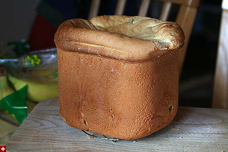 back at home, i wavered between working and checking the bread machine. i was horrified to see the bread rising so high that it actually touched the window. although i did add more yeast, it wasn't anymore than last time (1 tbsp) and it didn't rise as much as it did now.