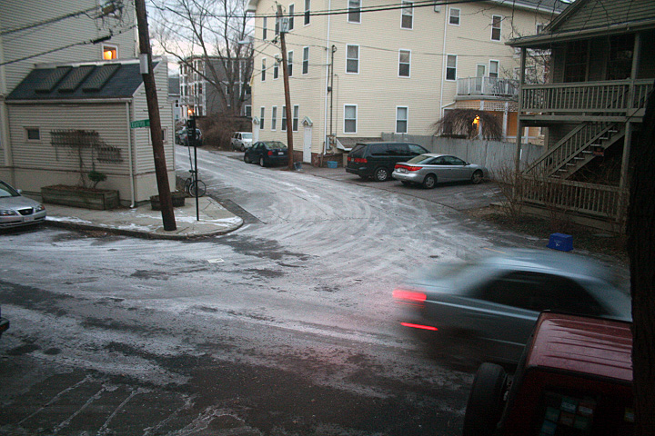 i can't believe how dirty the streets have become. the little of bit snow the past few days have gotten the road crew to salt the roads and the thrawing and refreezing have stains everything outside with that familiar white residue. it doesn't look pretty but it's still interesting.