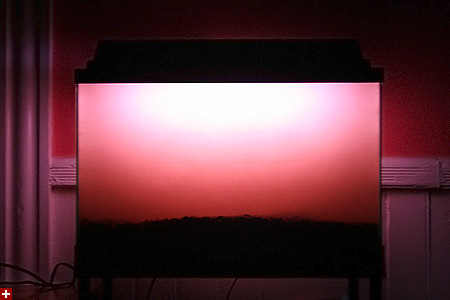 back at home i finally began setting up the 10 gallon tank, remembering my previous lesson of not washing an empty aquarium on its stand. i began by boiling the driftwood, as suggested by the kid working at petco when i noticed there were some snails on the wood. snails i can pick off, but there might be eggs, and a quick soak in boiling water will essentially sterilize the driftwood. while that soaked in a boiling bath (hey, kind of like cooking, except i don't get to eat anything), i started washing the 15 lbs. bag of seachem flourite gravel. i felt like i was panhandling for gold in the bath tub, but when i noticed the smaller gravel bits were scratching the porcelain, i relocated my operations to the kitchen sink. after sifting through the flourite and pouring it all inside the tank, i started filling up the aquarium with tap water. when it was all done, i had a zero-visibility cloudy tank. the lid i purchased yesterday seemed to fit better on this new aquarium (the previous tank was about a quarter centimeter too small depth-wise). as for the driftwood, i added it to the minibow (i took out the plastic pipe cave, it wasn't doing anything). somewhere during that time i was setting up my tanks, i had to go next door to help my neighbor renee with some computer problems.