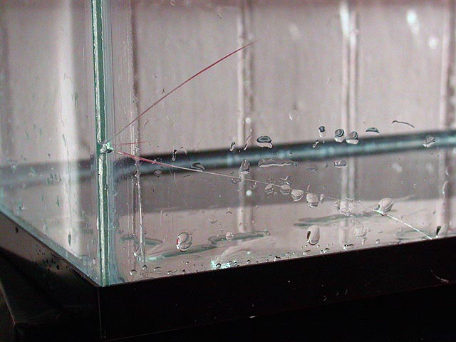 aquariums are fragile. i found that out the hard way when i cracked mine today. i was cleaning the glass and the tank slipped off the stand, one corner hitting the metal base with a noise like the sound of ice cracking. i immediately brought it into the bath tub and filled it up with water.