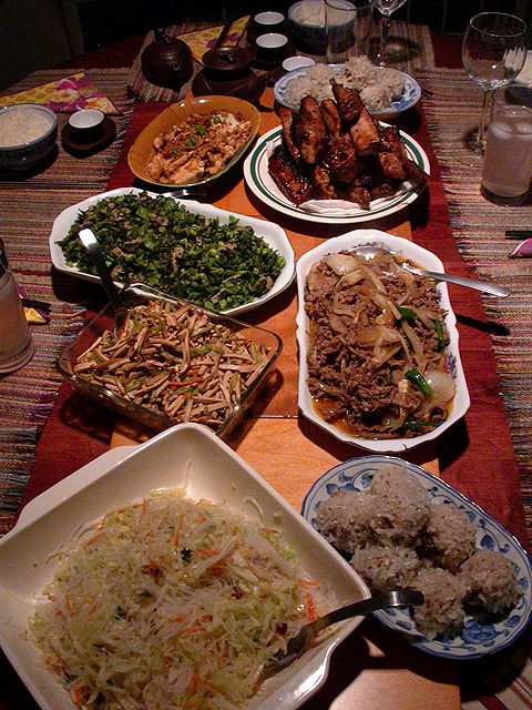 in the evening i went to go pick up my father at the cafe and then returned to belmont, where my parents had invited an tao and his wife for dinner (earlier my sister took them out shopping). it was supposed to be a pretty pleasant evening but i was in a shitty mood because the new dining room table already had deep gouge