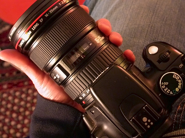 on i day that i thought i'd be free i woke up to an eyeful of bugs to fix. not good. i already planned out my day and it didn't include working. nevertheless, i put on my smart hat and started debugging. an hour later i was finished, but already i was behind schedule. i needed to borrow the car but 30 minutes later my father still had come by to pick me up so i started walking. along the way i bumped into him on the road. after dropping him off at the cafe, i drove to zeff's in belmont to pick up the lens i was renting for the weekend, the canon EF 16-35mm 1:2.8 L USM. this particular lens sells for around $1300; i was borrowing it a few days for $30.