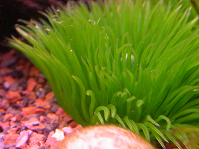 the mondo grass in the minibow isn't doing very well. i pulled it out and all the blades fell off. i rinsed off the roots, which has a fishy rotting smell (is that normal?), and replanted it back into the aquarium. if nothing grows back i'll dig it up again and toss it. i also added one of the plastic breeding grass (AKA baby hideout) - it looks pretty trashy, but i'll leave it there until i can get some more plants. now with the adult guppies gone, none of the other fish will eat the plants, so they're going to have a pretty good chance to grow. the young adult male guppy is still in the minibow. he's becoming even darker than before. i think he's still too small to hurt the fries, but i have to keep an eye on him. once he becomes full-sized, i have to move him to the 10 gallon tank as well. i just hope with so many males on one side that they won't start fighting with each other.