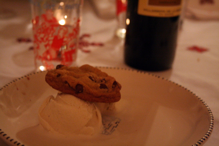when evening rolled around, i went out to shovel the sidewalk once more before heading to jerica's new place in central square for her mac lovers' tagine dinner night. for some reason i thought i could walk it but with the serious blizzard i opted for the overpriced MBTA.