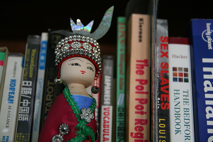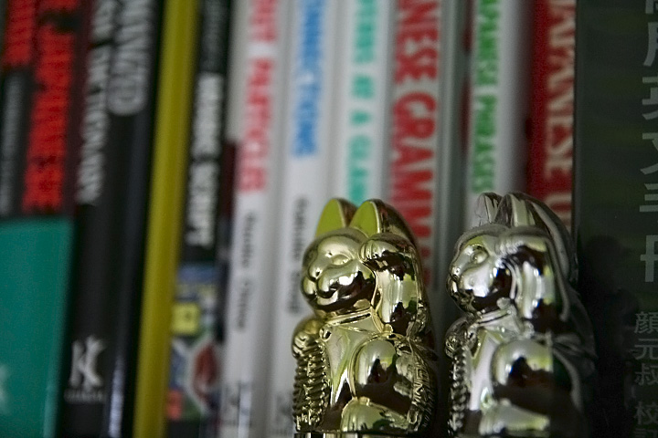 (20): these fortune kitties are actually candy containers. i also have a large collection of japanese language books, reminder of when i minored in japanese back in college more than 10 years ago. those are a distant memory now and most of my knowledge of the language are long gone.