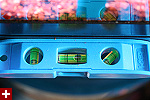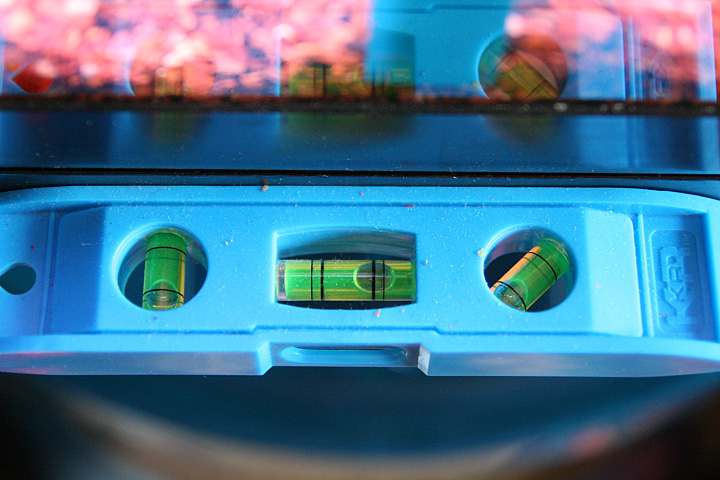(2): this little magnetic leveler is attached to my aquarium stand. it tells me things aren't leveled but i know this already because when i fill the aquarium to rim i can see it's higher on one side.
