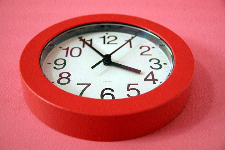 (8): my kitchen clock used to be black before i painted it red. for some reason it eats batteries like nobody's business. when it's really quiet in my house, sometimes i can hear the clock ticking. i think if my hearing was any better, the sound would probably drive me insane.