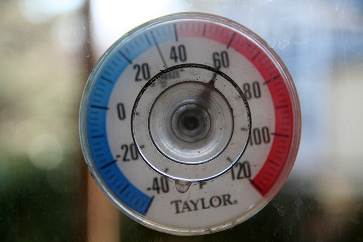 (1): this used to be how i found out about the day's temperature. unfortunately since the thermometer is attached to a southern-facing window, sunlight shines on it all day long, throwing off the accuracy of the reading. like, probably 50 degrees at best, but it read 60 degrees. it gets more accurate during the summers though, when the trees provide some shade. ever since i saw one, i want to get a high-low recording thermometer. nowadays when i need to check the weather i just go online (weatherpop and dashboard).