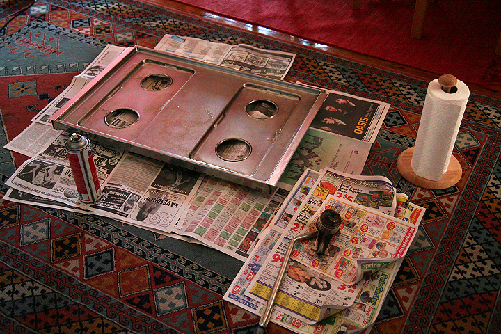 with an tao gone, i did some major cleaning. i hardly ever touched the stove but an tao used it everyday so it was pretty beat up with stains. i disassembled the components and sprayed them with an industrial strength grease cleaning gel. i vacuumed the spare bedroom and even swifted under the bed to clean up all the dust. i then reconverted it back to a storage room, moving some stuff from my bedroom.