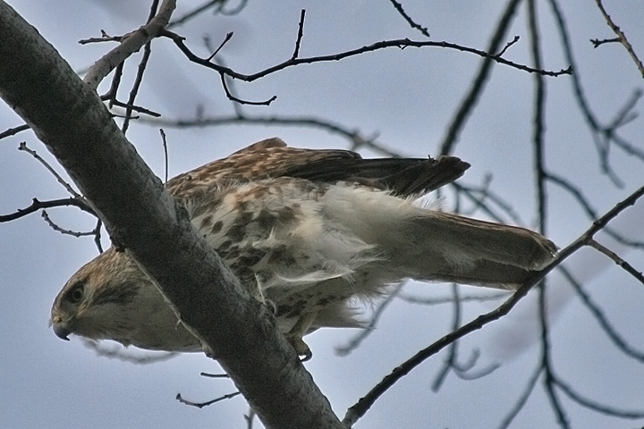 i was expecting to see a showcase of flowering trees but there was hardly any color at all, with most of them still in the bud stage and the only things ostentatious were an occasional perennial bulb here and there. bird activity were plenty but the only ones we saw were common year-round birds, nothing new. the only thing mildly interesting was an immature red-tailed hawk up in a tree down by auburn lake. even more entertaining was the woman grabbling a telephoto camera running around the edge of the water chasing after the raptor. she left her car keys on a bench (jesse didn't want to be my accomplice when i suggested we steal her vehicle to do some graveyard joyriding) and later left her bag on the road as well. when we came back to the area after wandering into the dell, the woman was still there, seemingly transfixed by the hawk who did its best in trying to avoid all that unwanted attention by flying away. since it was april fool, i thought it'd be a great idea to dress up as a bird and sit up in a tree. not one of those ironic mascot costumes, but a realistic outfit, so it'd totally freak people out when they saw a human-sized bird. fortunately most birders don't carry guns so the danger of being shot and mounted as a trophy would be minimal. something to think about for next year.