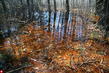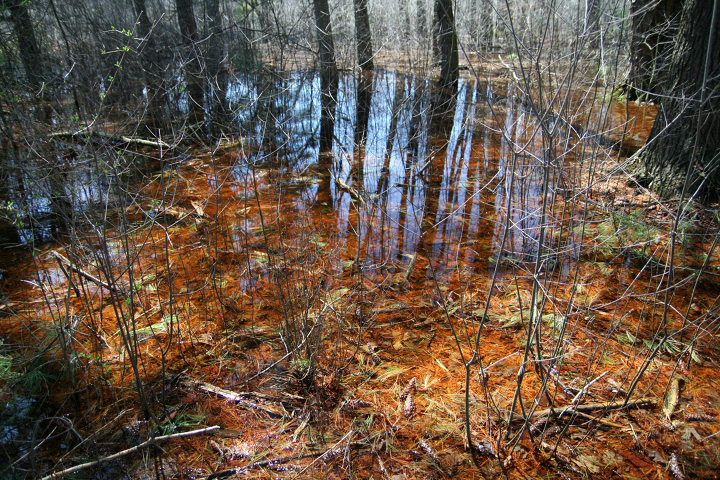 when i finally arrived, i got a little excited because just down the road i spotted a turkey crossing into the woods. there were several other cars in the visitors' parking lot, and i saw some people hanging around the headquarter office. i got myself a trail map and started walking. i should've realized from the conditions earlier that things might be a little wet. the trail was flooded in one direction, and went i went the other way, there was actually a sign saying the trail was closed because of the flooding.