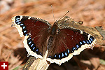 in a clearing in the forest where sunlight could get through, there were several species of butterflies flying around, either partaking in mating rituals or (surprisingly) chasing each other for territory. i saw the familiar mourning cloaks (previous sightings, 050720, 060412), a common early spring butterfly, as well as eastern commas (previously: 040710, 040711).
