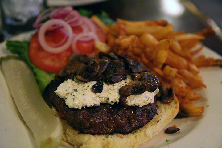 afterwards julie and i walked in the direction of park street. even though we were within striking distance of chinatown, julie wasn't in the mood for asian so instead we went to jacob wirth. the place was pretty empty, a slow night, and i ended up getting a so-so mushroom burger.